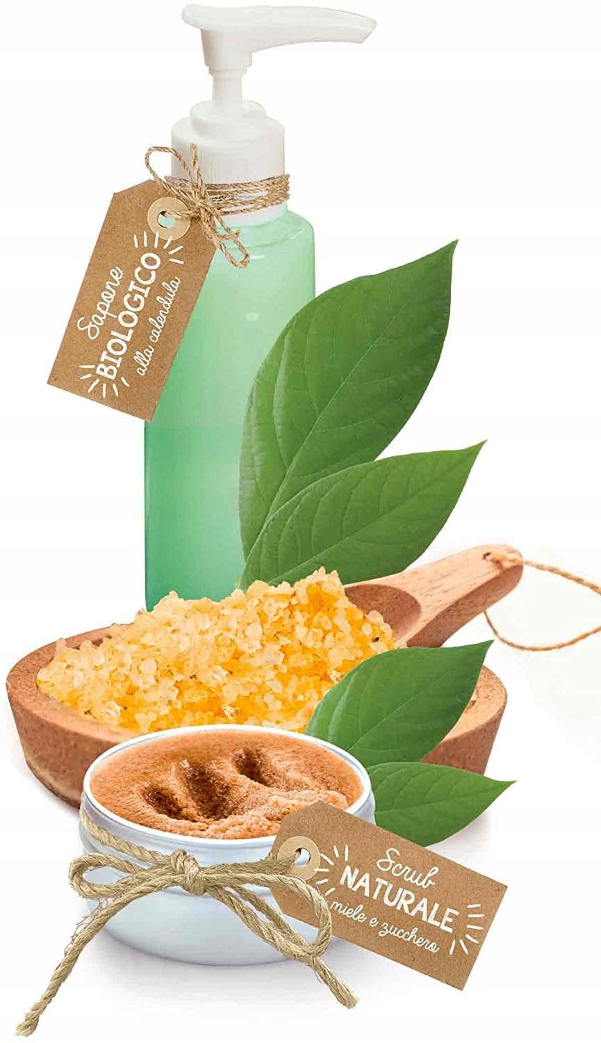 - Zawiera on składniki pochodzenia organicznego i naturalne barwniki, aby stworzyć wiele produktów dla zdrowia i urody: piankę do kąpieli, szampon, krem do ciała, mydło i krem do rąk, perfumy w sprayu i peelingi.