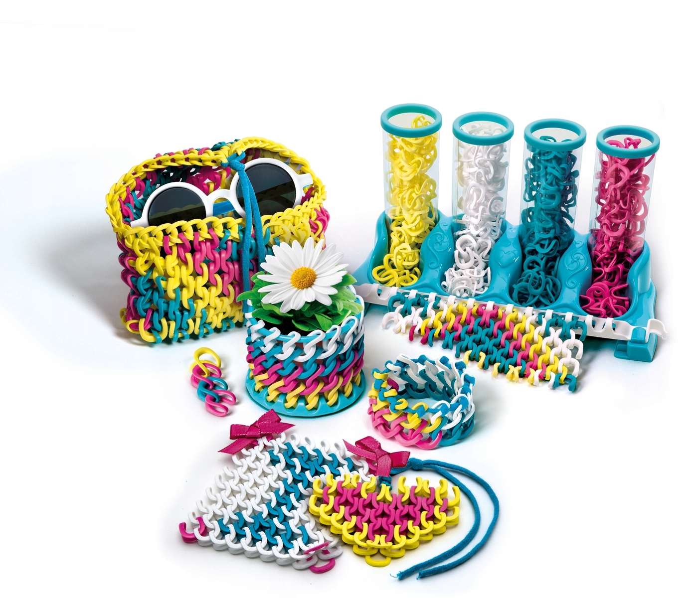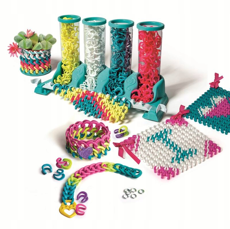 Zestaw – krosno do tworzenia niepowtarzalnych, oryginalnych i kolorowych rękodzieł i kształtowania różnych akcesoriów między innymi: torebek, bransoletek, naszyjników, piórników oraz wielu akcesoriów, jakie tylko sobie wymarzy mała księżniczka!